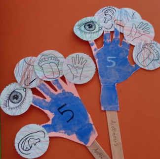 Τέλος, για την κατασκευή των αισθήσεων, τα παιδιά έμαθαν τις πέντε αισθήσεις και τις μέτρησαν στα δάχτυλά τους.