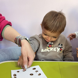 Για να φτιάξουμε την κάρτα μας, τα παιδιά έπρεπε να βουτήξουν τα δάχτυλά τους μέσα στην καφέ μπογιά, για να αποτυπώσουν πάνω στο λευκό χαρτόνι το αποτύπωμά τους. Αυτό θα αναπαριστούσε το πρόσωπο ενός ταράνδου. Στη συνέχεια, ζωγραφίσουμε τα κέρατα και τη μύτη με κόκκινη μπογιά.