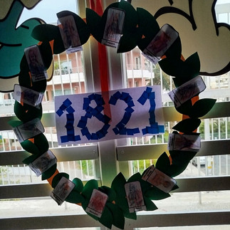Κάναμε κολάζ με φύλλα και τους ήρωες της επανάστασης. Καταφέραμε, έτσι, να κάνουμε μια ομαδική εργασία, ακολουθώντας οδηγίες και γνωρίζοντας τους ήρωες της επανάστασης.